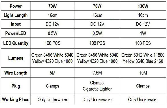 DC12V 70W/130W Dimmable LED Fish Submersible Underwater Fishing Light